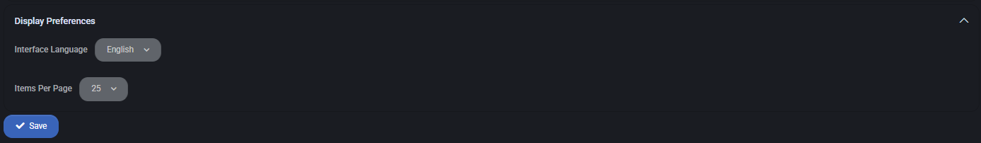 - Interface Language — Selects the preferred display language for the user interface. The change applies immediately after saving.